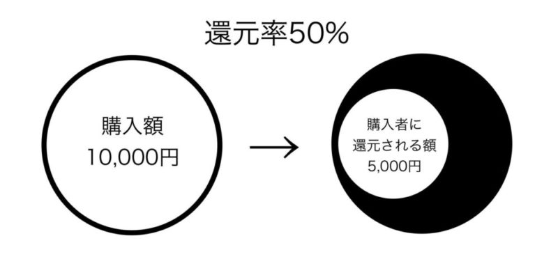 宝くじが全部で1万円分しか販売されないとしましょう。その内当選者に支払われる総額はいくらだと思いますか。答えは5000円以下となります。
